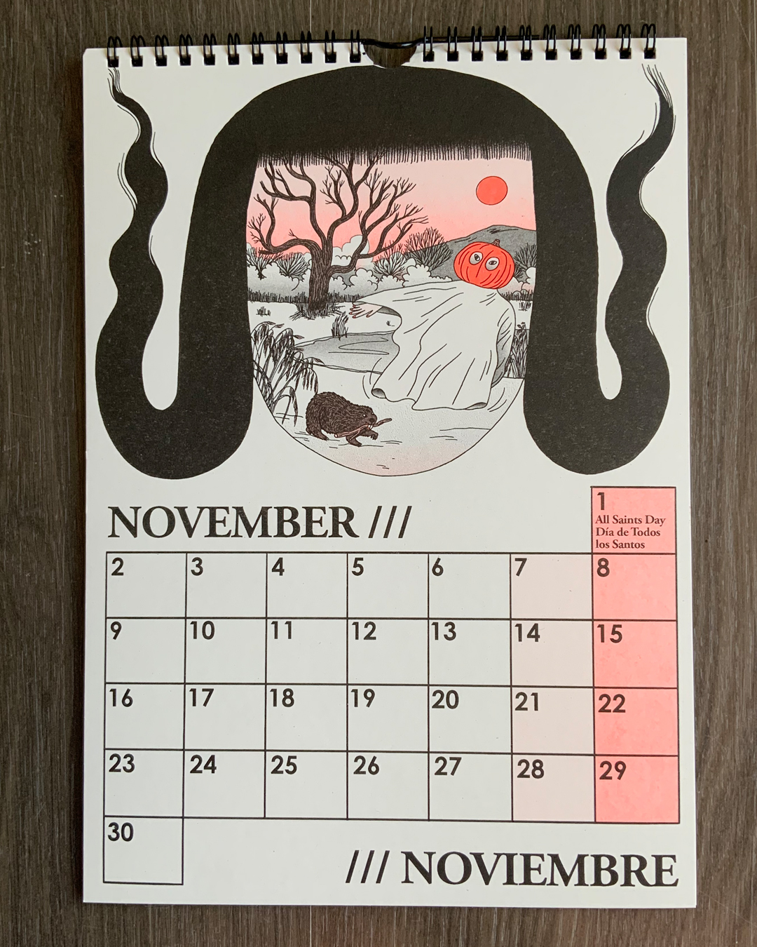 ✦✦✦ Illustrated risograph-printed calendar /// Calendario ilustrado impreso en risografía ✦✦✦