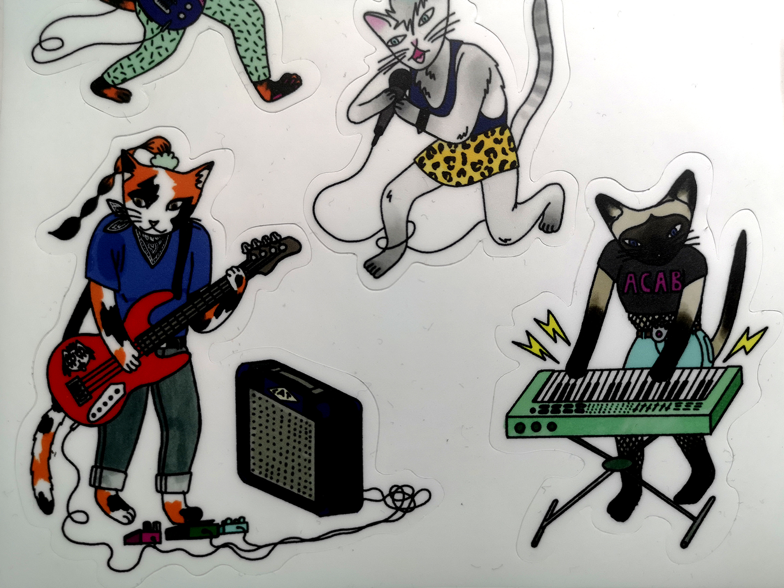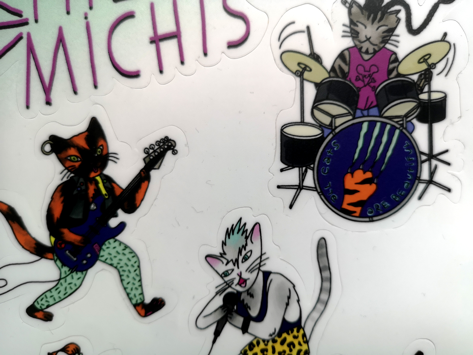 Laminated, super resistant, pre-cut stickerset of all the members of THE MICHIS, an all female cat punk band